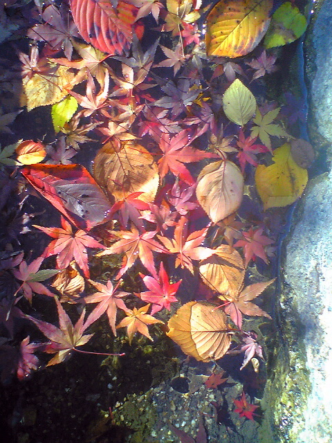 そんな葉っぱも、水に浮かんでいると、色とりどりできれいですね。