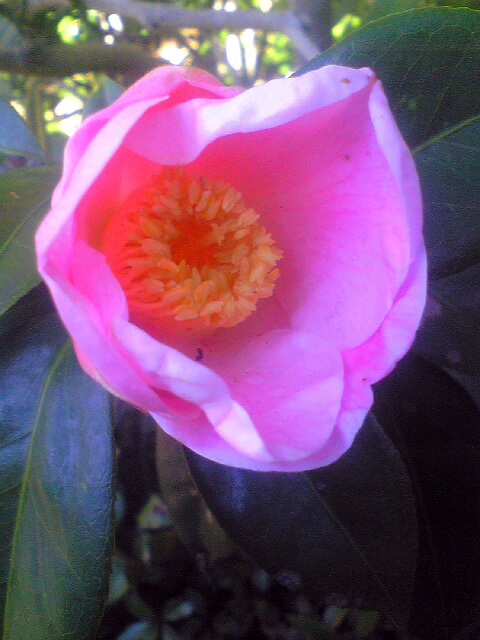 ピンク色で寒咲きの一重の椿は珍しいかも^^