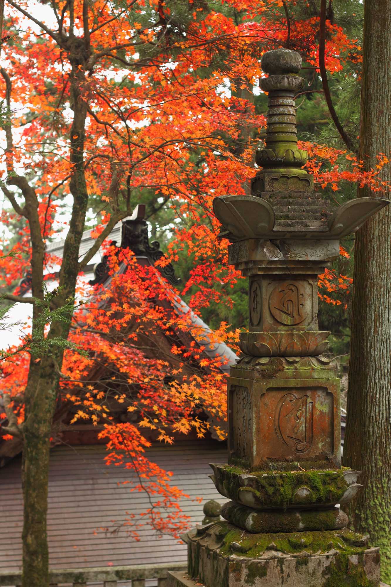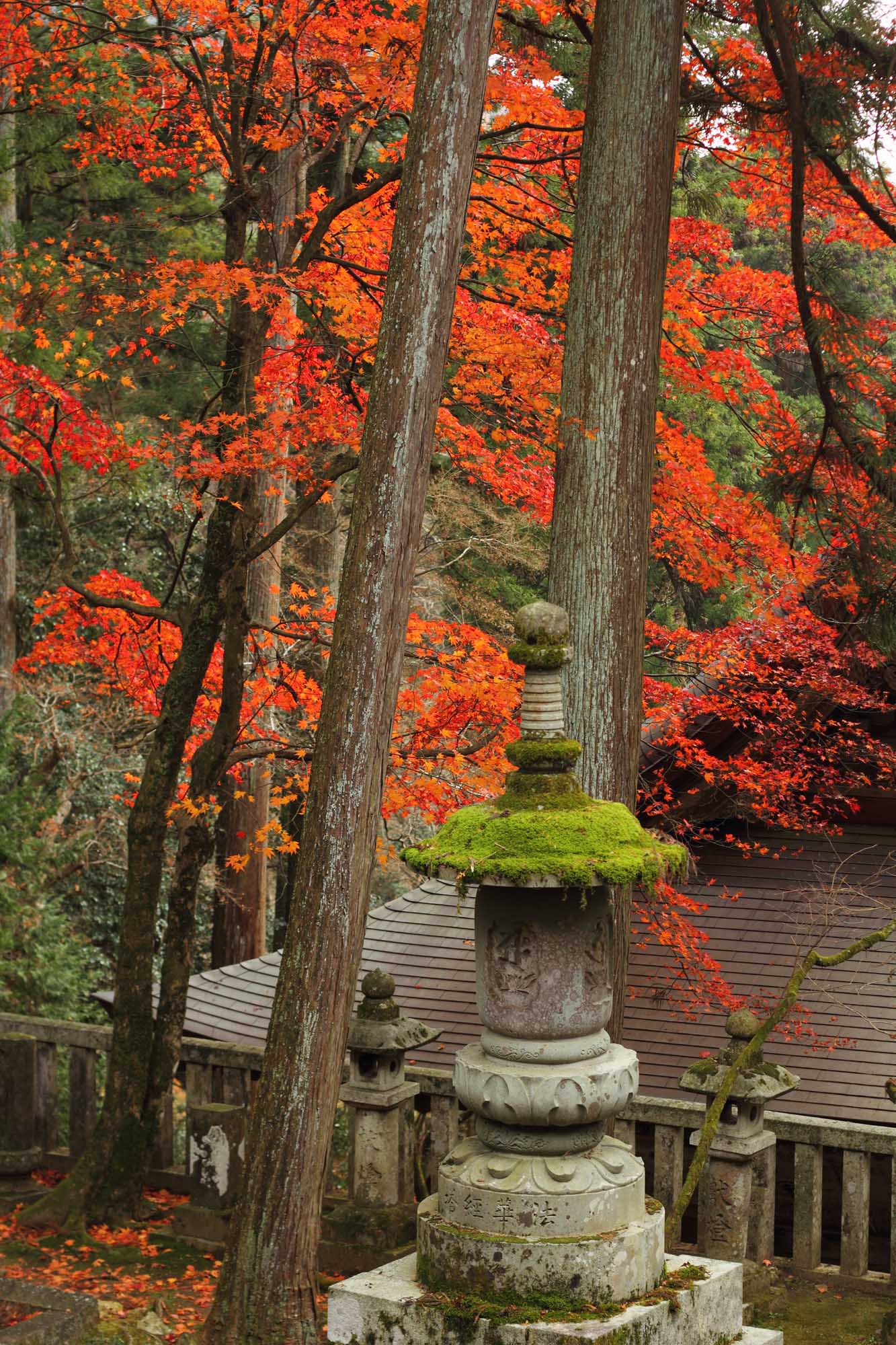 鮮やかな赤バックの中、石塔の苔むした寂寥感がとても孤独に佇んでいてとても美しく悲しい写真ですね