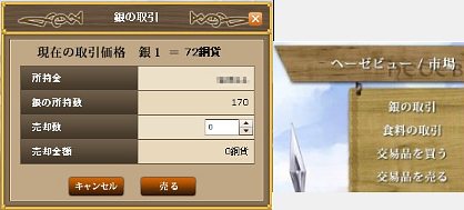 まず銀の取引価格を見る。70銅貨は売らない。80銅貨なら売りだ。
