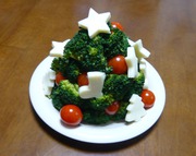 ツリーの飾りは、チーズの型抜きですよん。手抜きポイントは、実はこれが『スライスチーズの3枚重ね』という点です