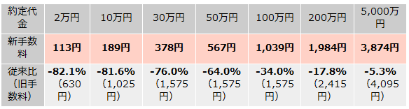 約定代金10万円以下であれば従来より80%以上の引き下げ、