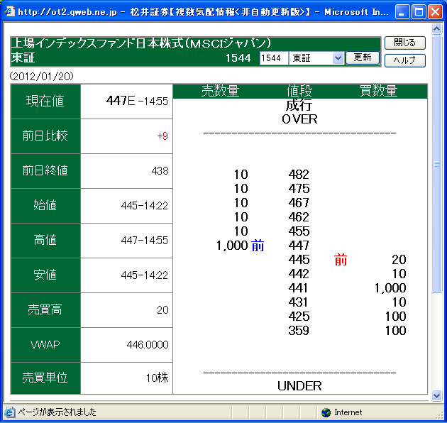 大引けのMSCIジャパンがNAV(469.05円)との乖離率が -4.7% ~ -5.1%です。