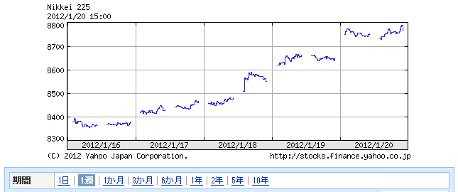 【解説!?】[日経平均 8,766.36(8,500.02)]()一週間前