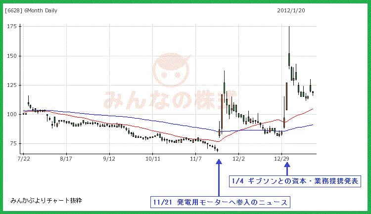 おかげで、最近のオンキヨーの株価が上下に跳ね回っている。(上のチャート参照)