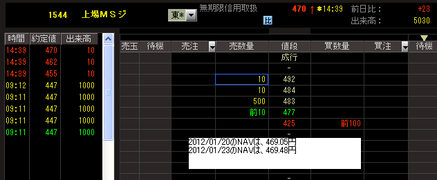 先週末は激安だったMSCIジャパンETF(1544)ですが、今日も激安でした。
