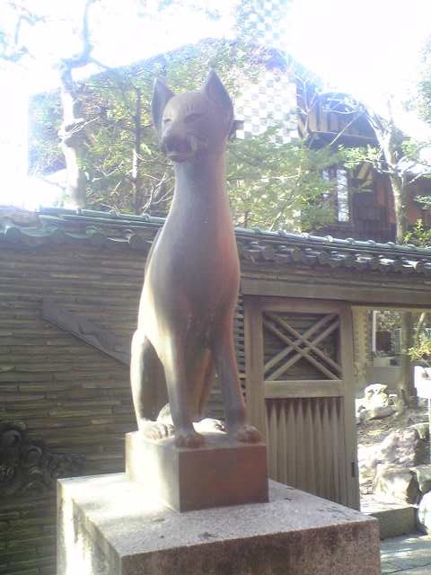 このお狐様、いつも私がお参りに行く天神さんの境内の中にあるお稲荷さんのお狐様とは全然違いますね^^;