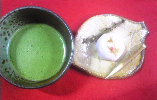 梅の香りを楽しみながら 頂くお抹茶・・・