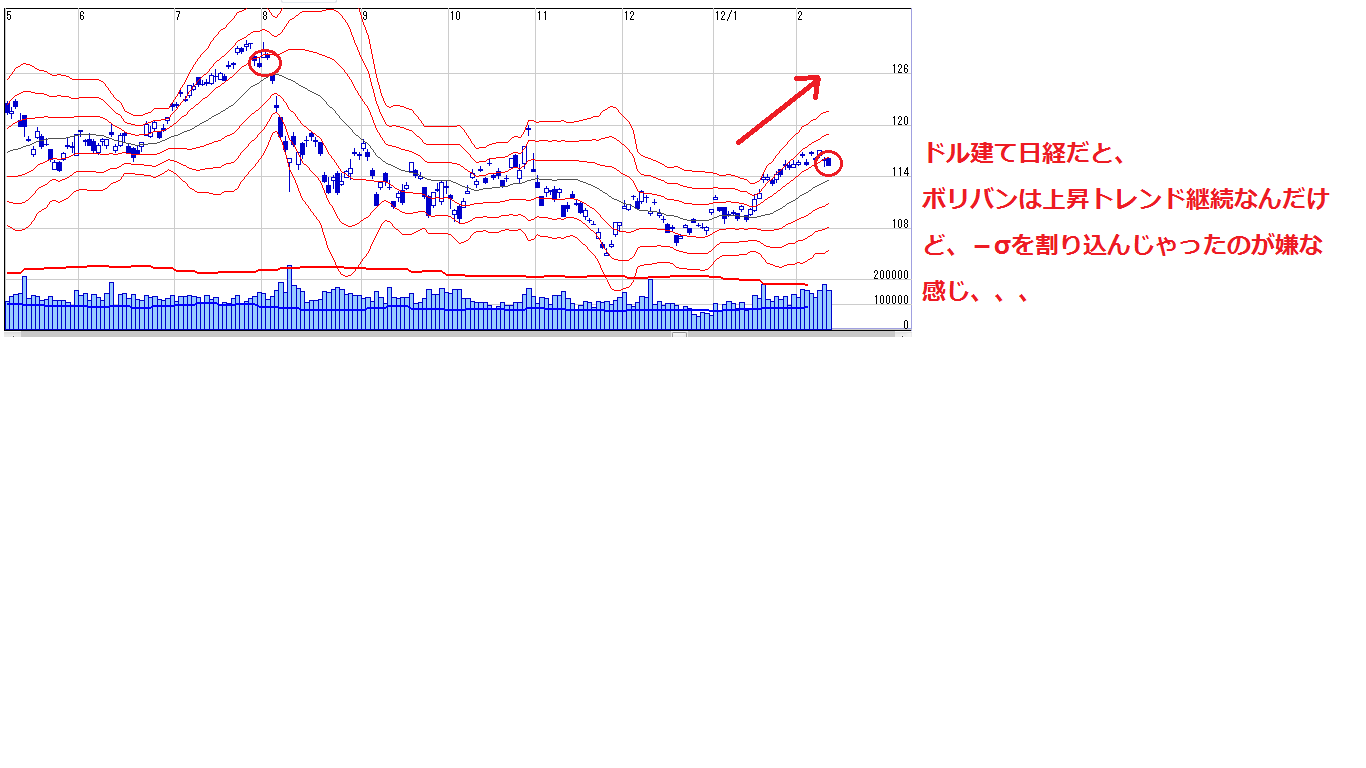 追記 チャート確認したら、ドル建て日経ボリバン(画像2)がちょっと嫌な感じですね、、、