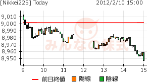 日足は、髭のない陰線。しかも、終値8950円弱。昨日が十字線でその前日水曜日が陽線なので、この3日間で元に戻ったとも言える。この動きは1月末の動きと似ている。調整の可能性が高い。