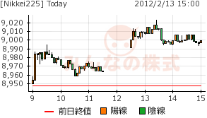 円安継続を受けて、9000円まで上げての攻防だったが、高値で引けた。