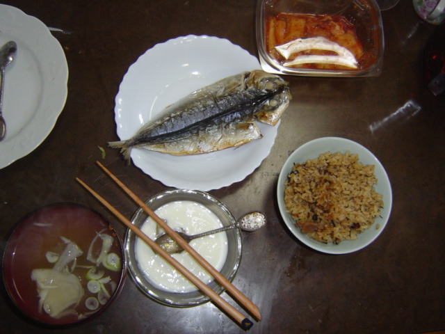 PHOTO 今朝の朝食 館山で干物購入したので「干物」です。