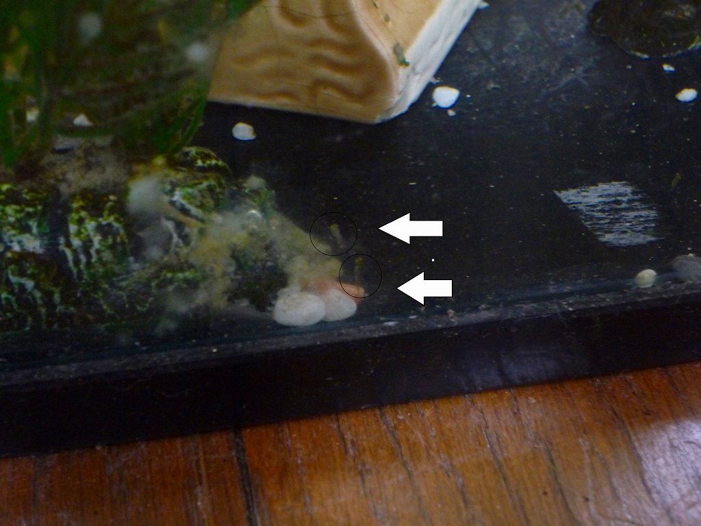 (写真の水草装飾にも何匹かいるはずだが、小さすぎて写らない。)