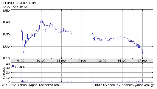 本日は立会外分売で、前日申込んだアルコニックス(3036)が当選してました![]()