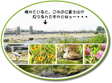 川辺には、写真のような鳥や花たちが!
