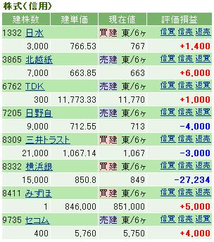 みずほはチャート的に買いたくはないけど、銀行株は連動するのでとりあえず1株入れて監視してます。モニタ1枚なのでページの切り替えが面倒臭く、こうやっておけば保有銘柄の画面を主に見てれば良いので楽チンなんです。