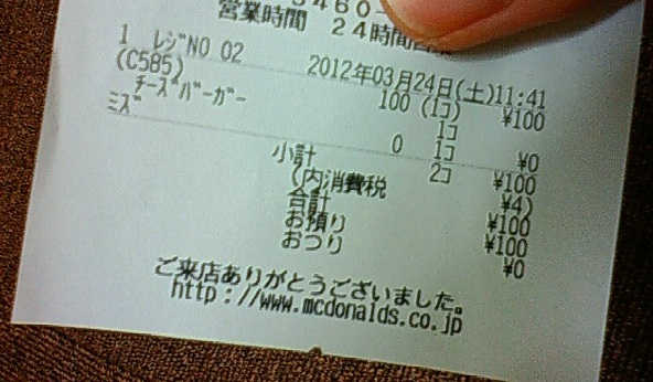 なるほど、マックでは水もレシート
