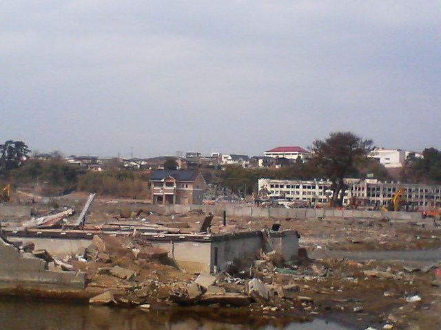 新築と思しき家屋もないではないが,通りすがりの者の目には,復旧・復興にはほど遠い現状としか映らない。国道沿いにプレハブのコンビニが何軒か,がれきが街の外れなどにまとめられた,ということぐらいか?