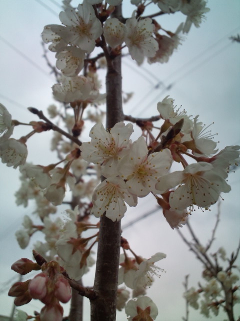先週久しぶりに自宅に戻ったら、写真のとおり庭のサクランボが満開になっていました。