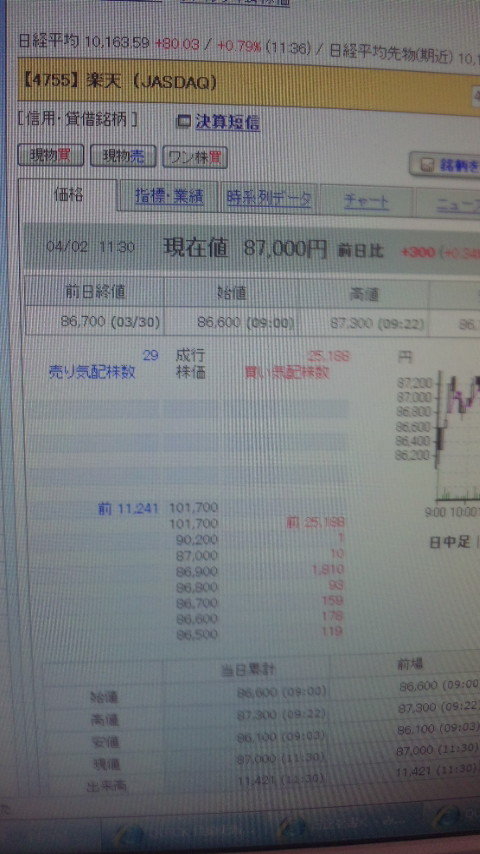 楽天の後場寄り前の気配。。。