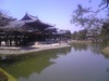 鳳凰堂(国宝)天喜元年(1053年)の建立。浄土式庭園の阿字池の中島に東向きに建つ。