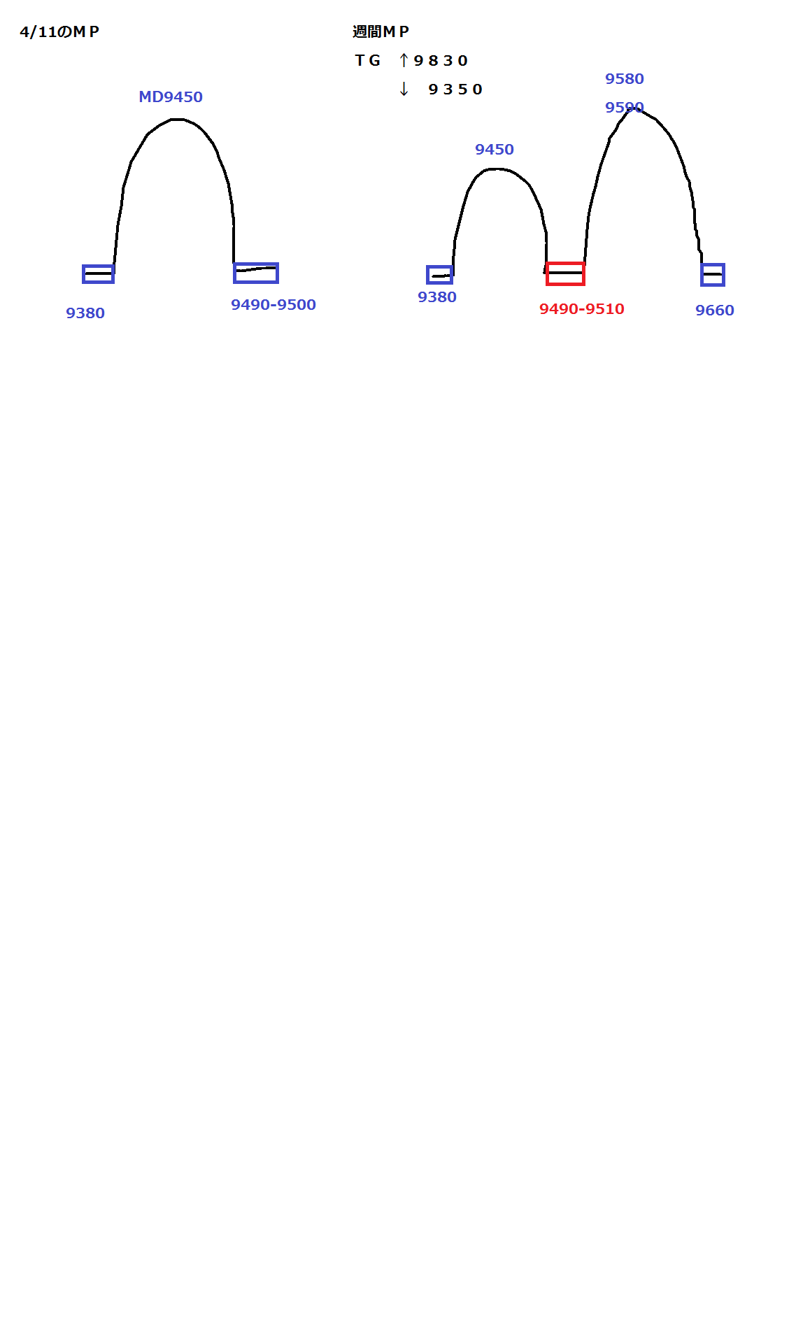 日経は夕場で週足MPのターゲット9360つけて反発してますが、下落トレンドにはかわりないと考えます。