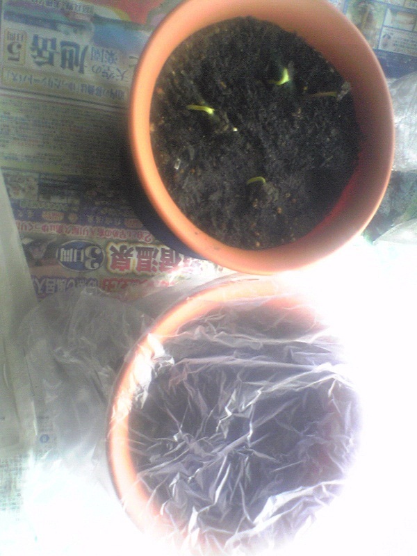 4/1225度15:00ひまわり発芽根が出る