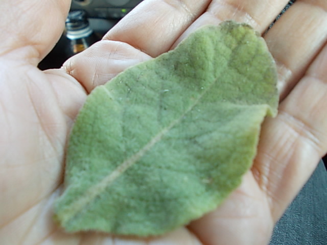 葉っぱと写った自分の手のしわの多さにビックリ・・・