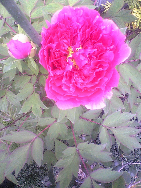 ぼたんの花王が咲いた。2年目ですが他に4つ芽がついています。