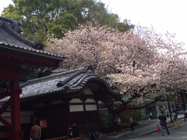 安田講堂前のしだれ桜はほとんど散って、一部だけ残っていましたが、赤門裏の桜はほぼ満開状態できれいでした。