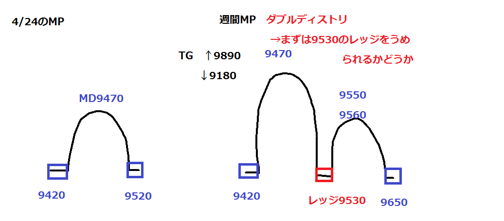 MPも9530のレッジを埋めないと上昇トレンドに戻れませんし。