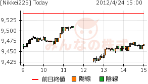9450円を割り込んでからの反発。売りと買いが交錯しているようだ。