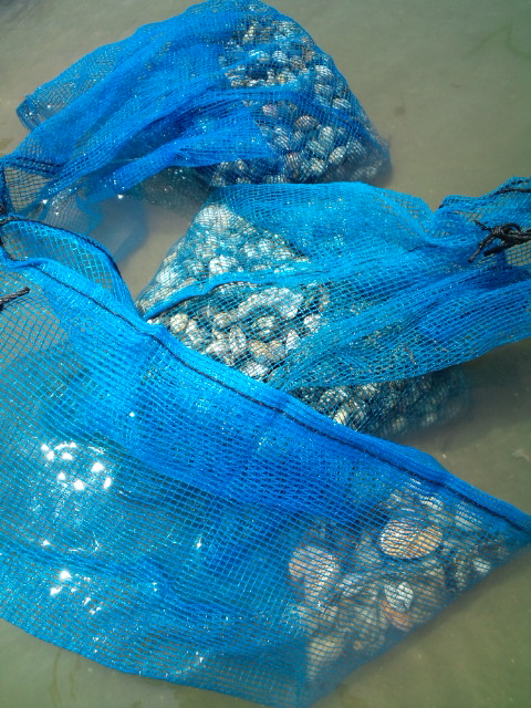 岸に近い方はおそらく稚貝をまいたばかりで、まだ大きくなっていないと思います。