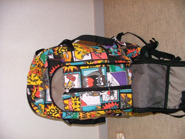 休みの日は、このリュックにミッキーの帽子かぶって、街歩くか、ドラッグスターで走ってます。