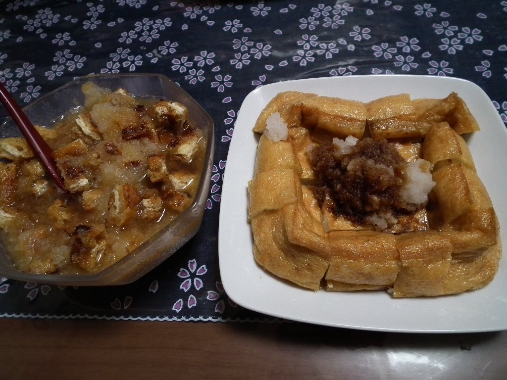 山菜料理があまりにも続くと、拒絶反応は油揚げの巨大化に現れます・・ →Orz///