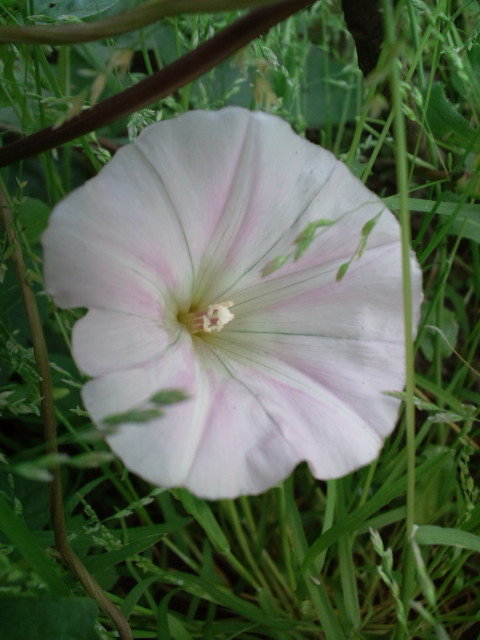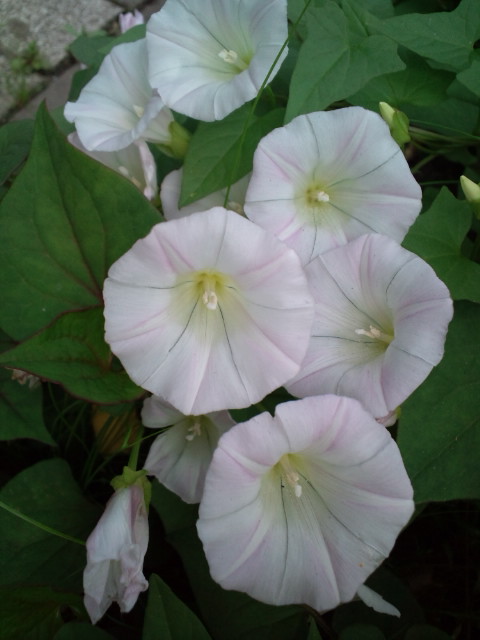 アサガオに似た花が街路樹にからまりながら、写真のようにたくさん咲いていました。