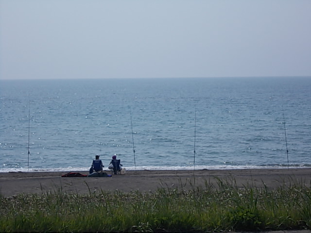 日本海は穏やかで釣りを楽しむ人あり