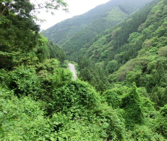写真は深い山奥を写したものですが、手前のこんもりと盛り上がってるのが、マタタビの繁みです