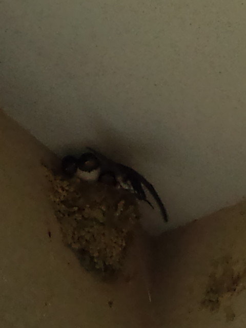 軒下の日陰に巣が作ってあるため、写真では暗くてわかりにくいと思いますが、巣には4匹のひながいました。