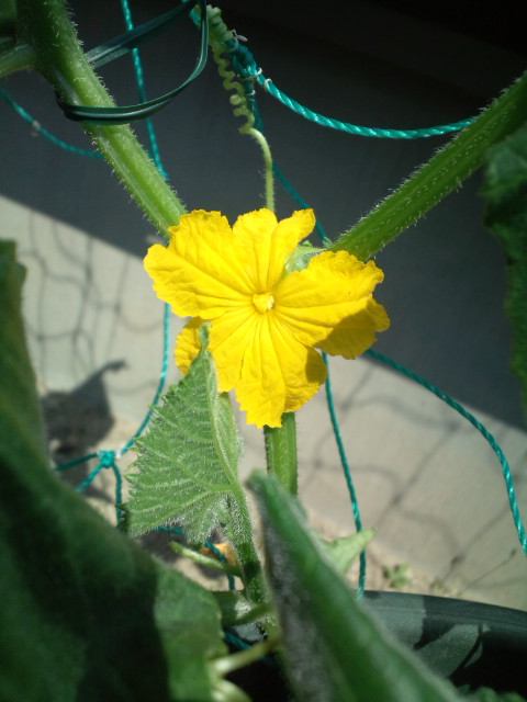先週末に自宅に帰った時に撮ったものですが、猫の額ほどの庭の一角にある家庭菜園で作っているきゅうりとピーマンの花が咲きました。