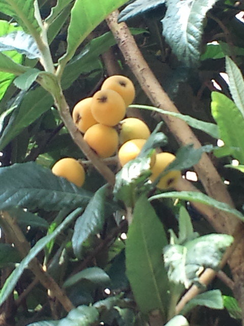 今日自転車で走っていたら、道路脇のビワの木に実が生っていました。