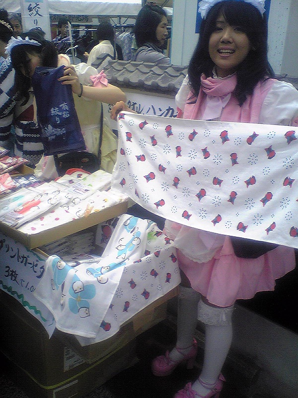 土曜日の微妙な売り子さん、今日は絞りの着物来てました。