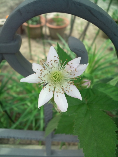 自宅に植えてありながら、ラズベリーの花を初めて見ました。