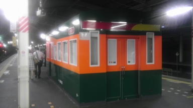 ミカン電車の形をした「立ち食いそば屋」