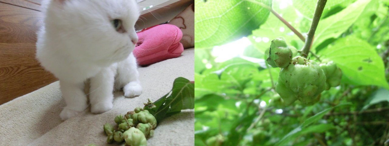 ごつごつの方は虫が卵を産みつけた実で、薬用や猫用です