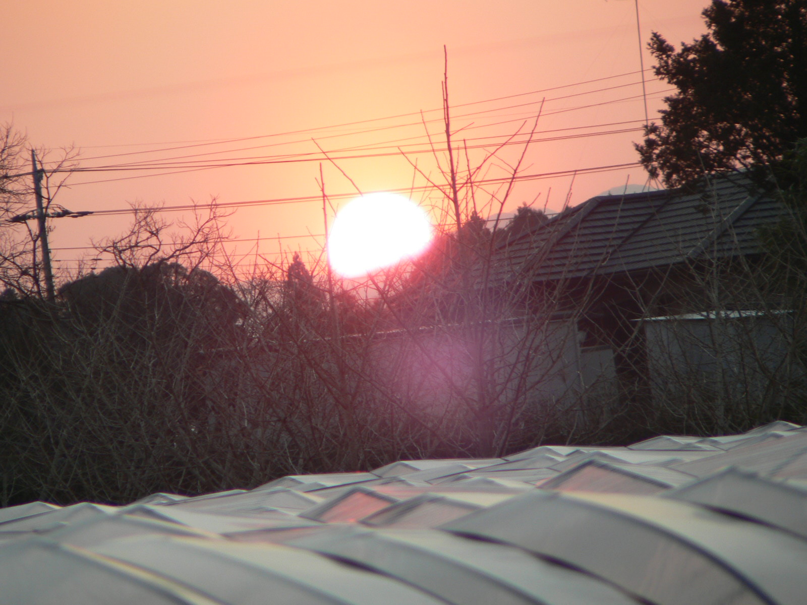 この夕日は、昨年の今頃水戸市に行った帰り真っ赤な夕日と出会いシャッタ-押しました。