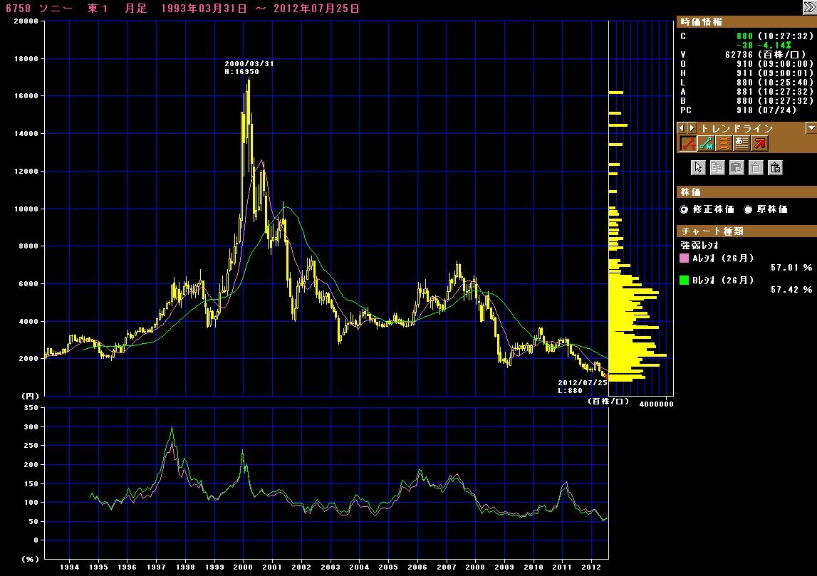 添付のチャートは月足で 1993年から今日までの足取りです