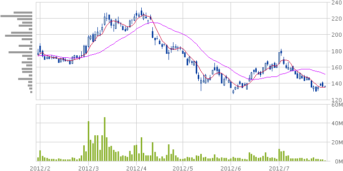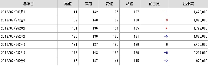 昨日の時点で142円の寄り天となり、その後買値の137円まで下がりました。