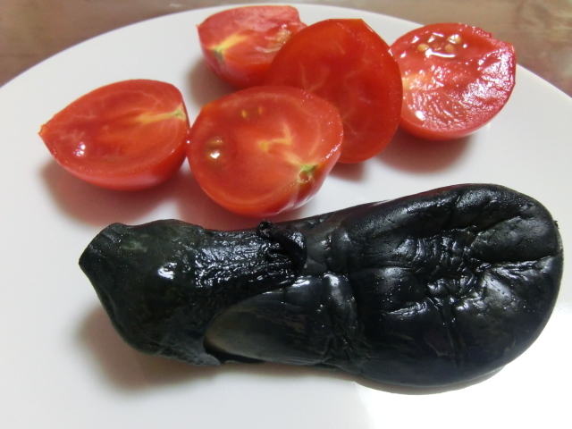 写真はナスビの漬物ですが、結婚して永いことかかって、女房どのはようやくナスのへたも美味しいということを