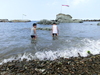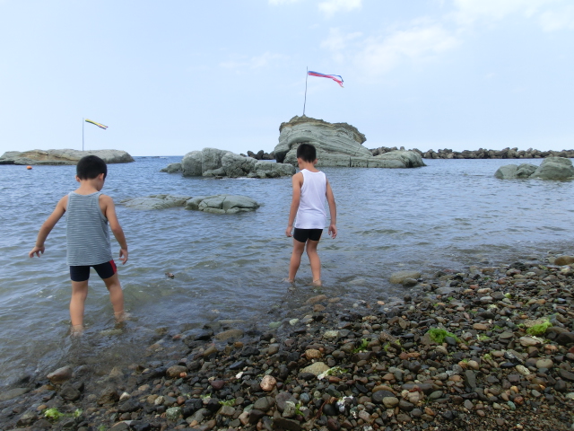 奇岩が横に連なり、子供達の磯遊びに格好の場所です^^